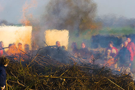 wir wärmen uns am Osterfeuer in Bannesdorf