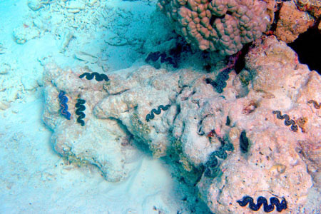 das sind die "Mördermuscheln", sie können bis zu eineinhalb Meter gross werden und dann sollte man keinen Fuss reinstecken