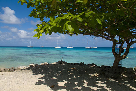 dort liegen schon ein paar Yachten im türkisgrünen Wasser